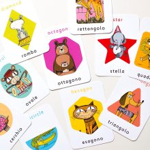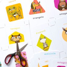 A pack of 10 A6 shapes cards to print out at home. Each pack comes with instructions to our games guide where you will find some ideas for having fun with shapes and learning as you go. How about drawing the shape the animals are sitting in? Or finding objects around the house that match each shape? Please see our terms and conditions before purchasing our printable products.