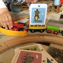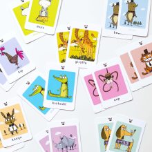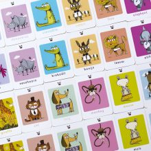 A set of 30 beautiful dual language animal snap and pairs cards. Play any number of games; matching, snap, memory, colours, pairs, hide and seek… at home or on the move. Please have a look at our games guide in the club section for more ideas. These handy cards are A7 size and have been specially coated for strength. Each set comes with a special cotton bag for storage.
